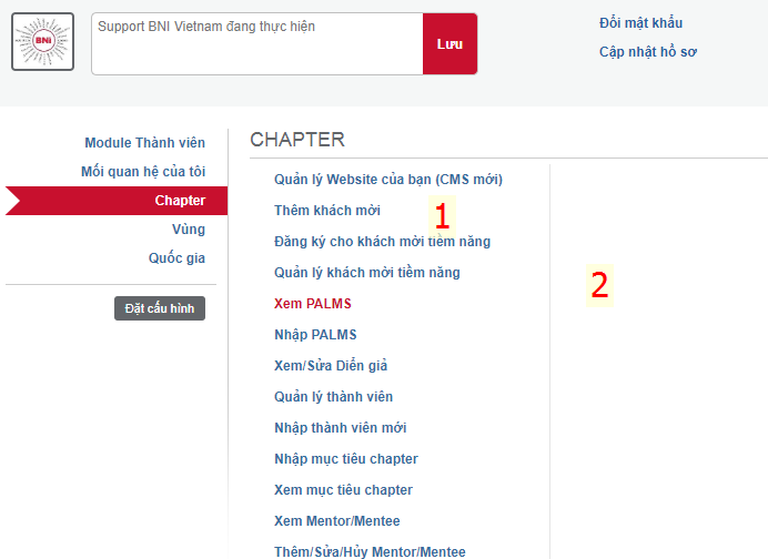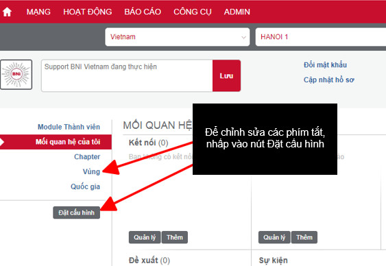 Đăng nhập vào BNI Connect và nhấn vào nút Đặt cấu hình